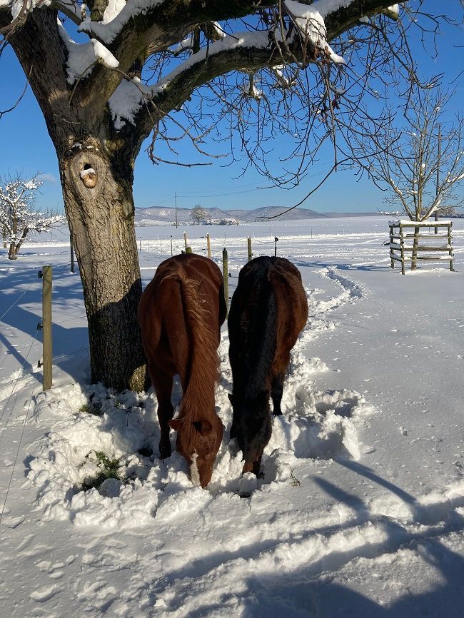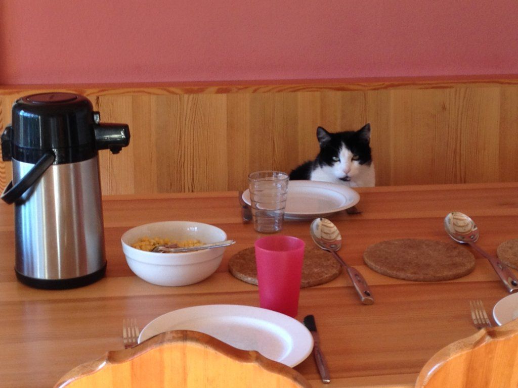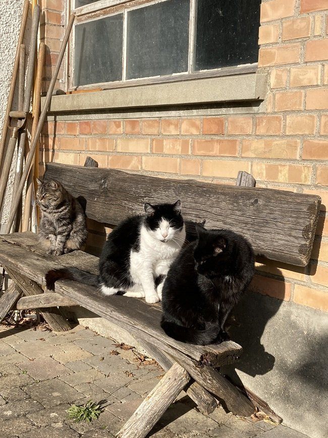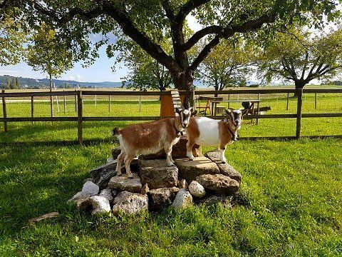 Mit uns leben verschiedene Tiere auf dem Hof: Hauskatzen, Zwerggeissen und Pferde.